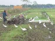 asyiknya membajak sawah di temani burung blekok atau kunthul